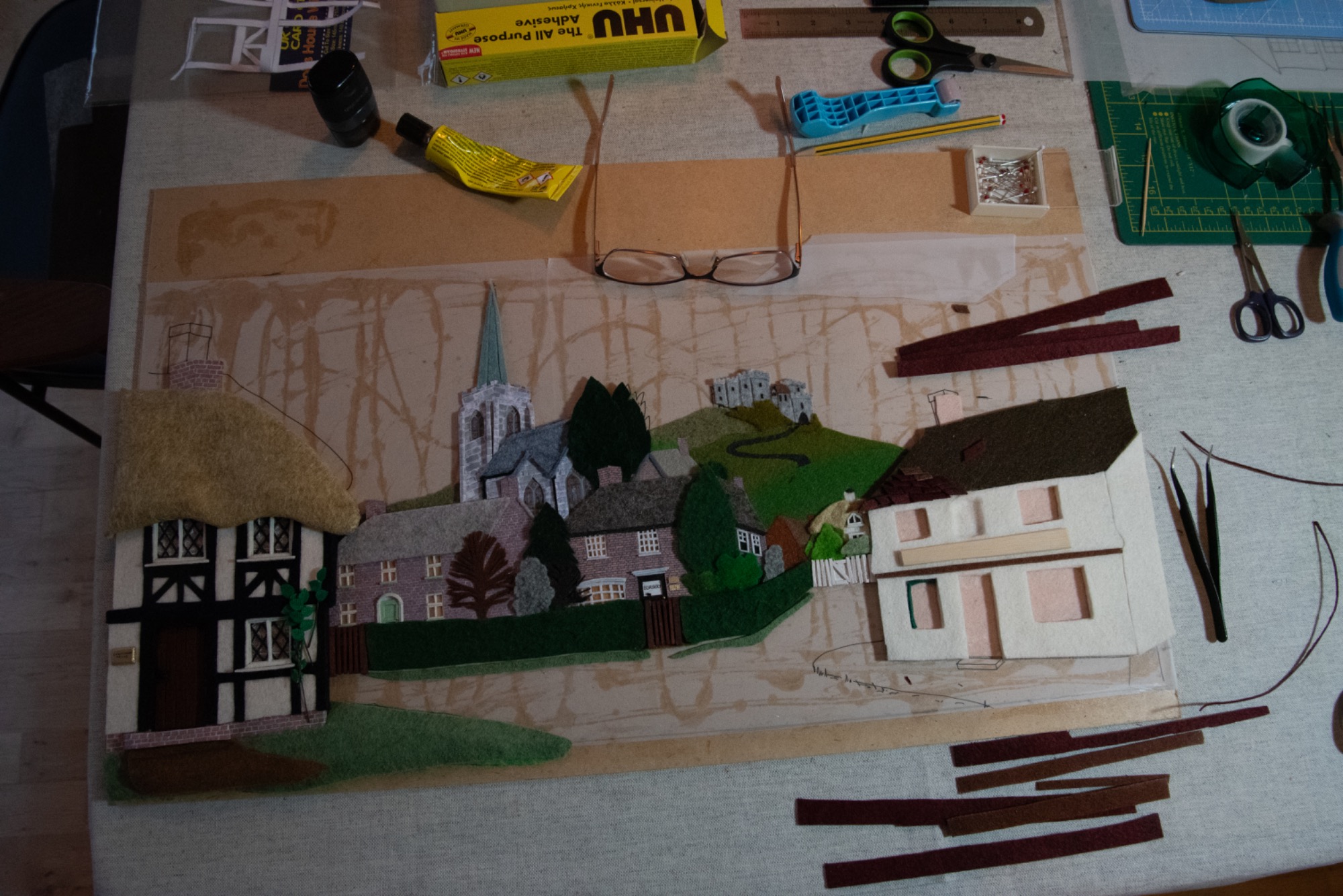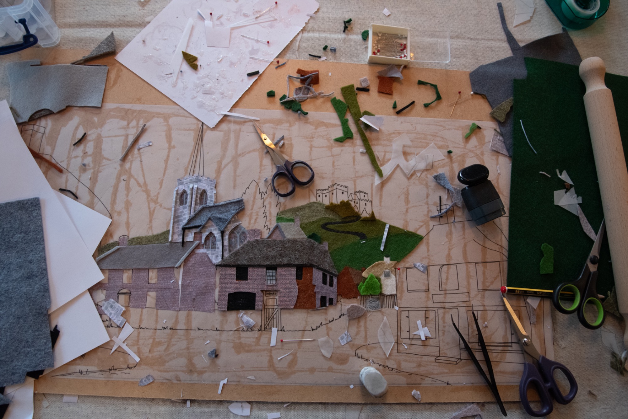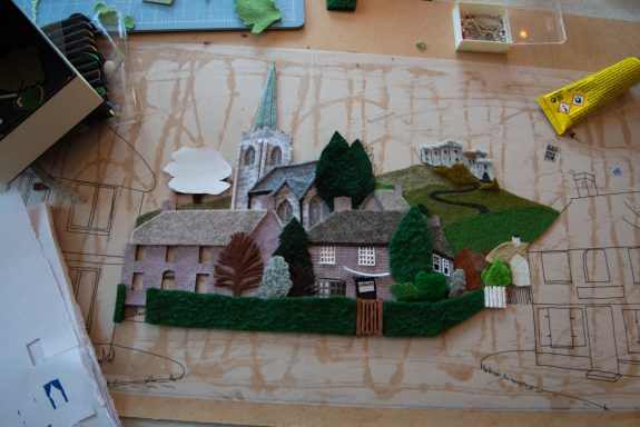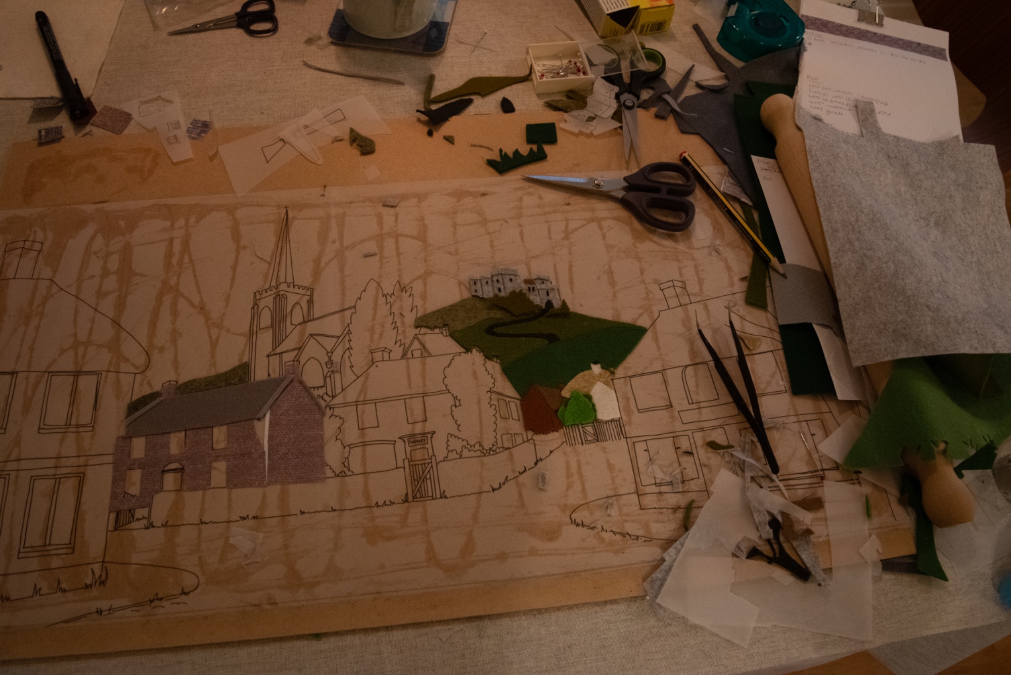 The Feltbury Village backdrop was a four week project. The pictures below chart the journey of how the village came to life