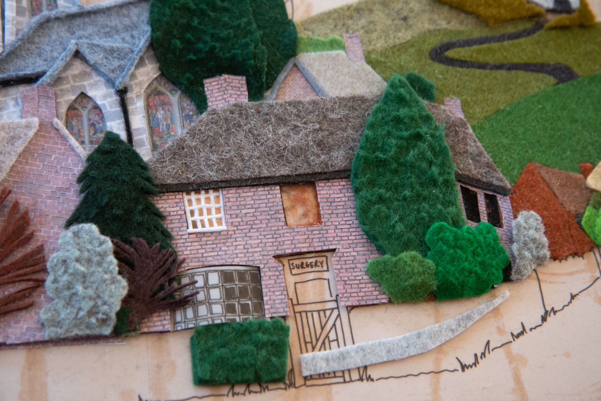 The Feltbury Green map shows where each of the characters lives within the village (slide 7). To create the map, a number of iterations were completed, along with some tracing (slides 5 & 6), plus practice drawings and paintings. The photos show the initial sketch through to the completed map which appears on the website under A Brief History of Feltbury Green
